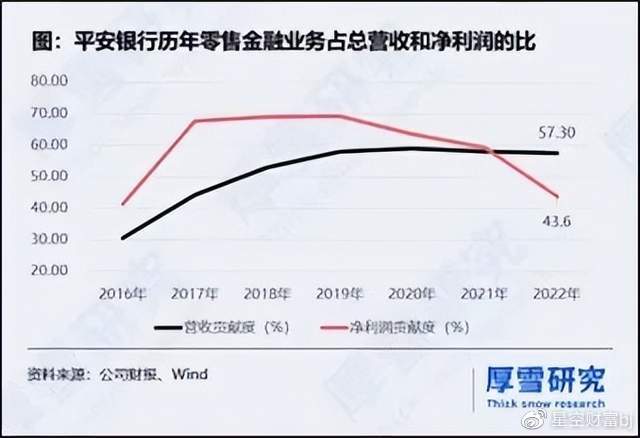 业绩贡献度来看,零售金融业务营收占比57.3%,净利润贡献度仅为43.6%。而在2017年到2019年之间,平安银行零售金融对整体的净利润贡献度曾一度接近70%,真是不可同日而语了。