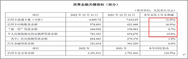 先看个人贷款业务。2022年末,平安信用类消费金融业务量受挫。信用卡流通数量、信用卡应收账款余额及信用卡交易金额均下降。虽然,平安调整策略,加大抵押类贷款投放力度,但抵押类产品盈利能力要差于信用类,整体盈利能力可能面临下行压力。