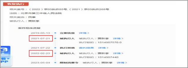 近日,原乐视网大佬贾跃亭,因到期无力偿还到期债务,又新增一则限制消费令,申请人为平安银行(000001)。案件审理流程显示,此前贾跃亭已两度被恢复执行,标的超15.14亿元。
