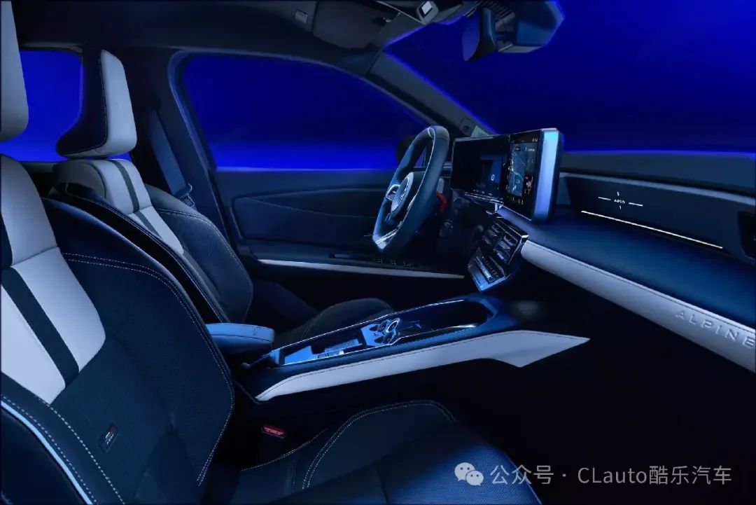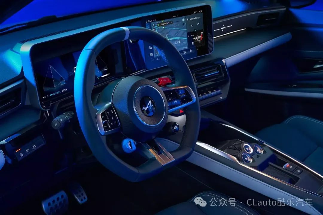 内饰部分,基本仪表架构包括10.1英寸信息娱乐屏幕,从雷诺5上继承而来,但Alpine为新车新增了运动踏板,甚至在下部控制台上配备了一套变速器选择按钮,就像A110跑车中的一样。
