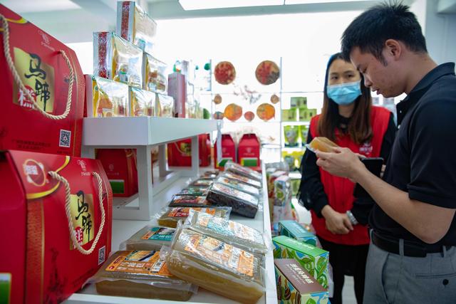 走进二楼的白云区预制菜体验中心,包装完好的预制菜摆放在冷藏柜中,顾客可按需挑选。现场还提供微波炉、电磁炉和餐具,买完就能加热食用。此外,启动区内还设置了白云区农业名品超市,穗香鸡、江丰卓味黄鸡、海利来预制菜、朱仔烧腊、安圜绿色蔬菜、水沥红葱、人和园大米等超过160种名特优新农产品已经入驻,市民可一站式购买物美价廉的白云优质农产品。