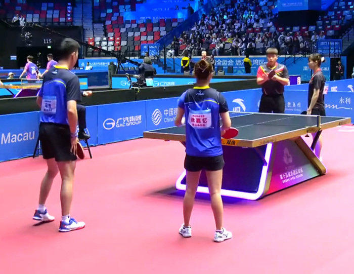 比赛开始后,黄镇廷/杜凯琹迅速发动在首局取得领先优势,但后半段出现松懈导致8-9、9-10被周雨/臧小桐逆转,挽救局点后仍然以10-12落败,第二局又在8-5领先的情况下被追至8-7于是暂停进行调整,紧接着10-7领先错失1个局点,不过最终还是以11-8扳回一城。