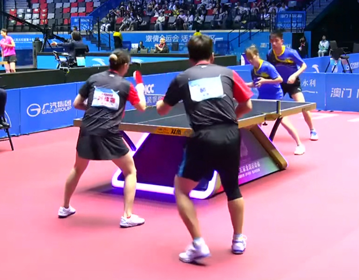 天津名将组合郝帅/刘炜珊来历不凡,前者曾是国家队的一线高手,拿过世界杯男团冠军等荣誉,后者则是去年全锦赛的女单金牌得主,两人虽然相差16岁,但配合效果还是非常不错的,前一天首战就3-0横扫北京八喜队的黄友政/孙晨,状态渐入佳境。