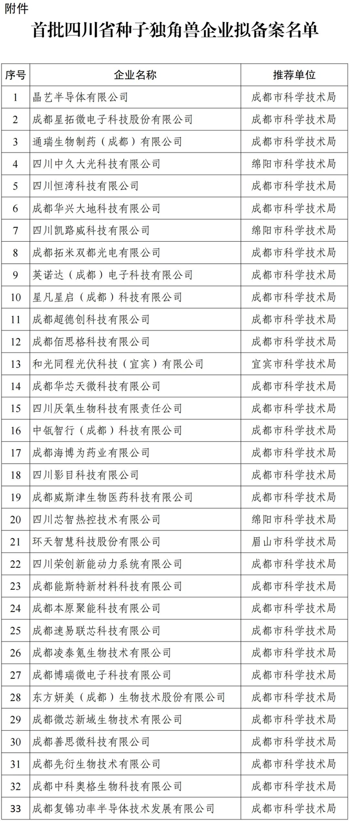 根据《四川省种子独角兽企业备案培育办法(试行)》(以下简称《培育办法》),种子独角兽企业,是指处于创业期,有较好发展前景,创新性强、增长速度快、得到资本市场初步认可,具有成为潜在独角兽、独角兽企业潜质的科技企业。
