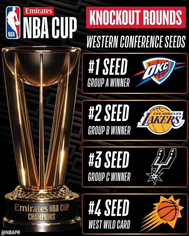 北京时间11月29日,NBA杯赛小组赛最后一个比赛日结束,八强全部产生,西区:雷霆、太阳、湖人、马刺;东区:魔术、热火、猛龙、尼克斯。